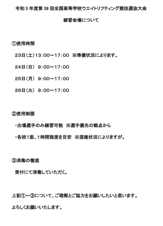 【開催要項】令和5年度 第39回全国高等学校ウエイトリフティング競技選抜大会