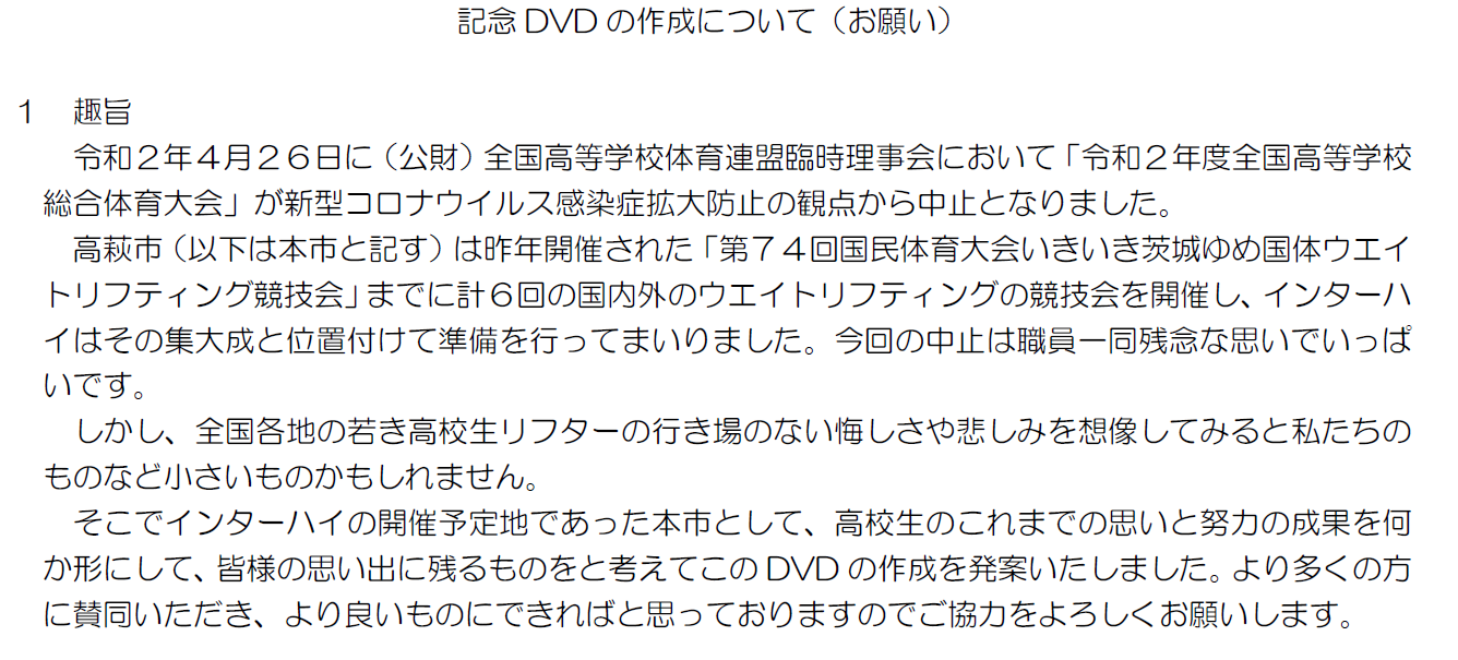 インターハイオフィシャルショップについて、周知のご依頼を申し上げます。